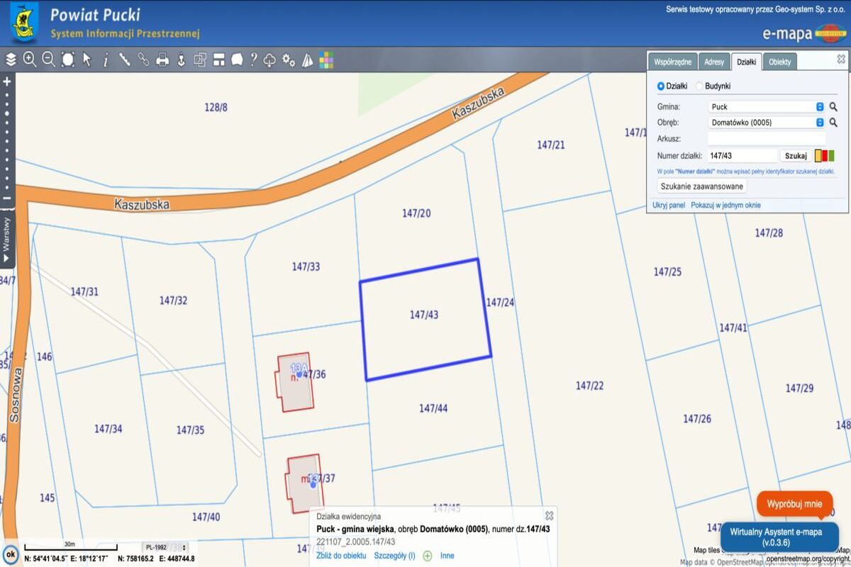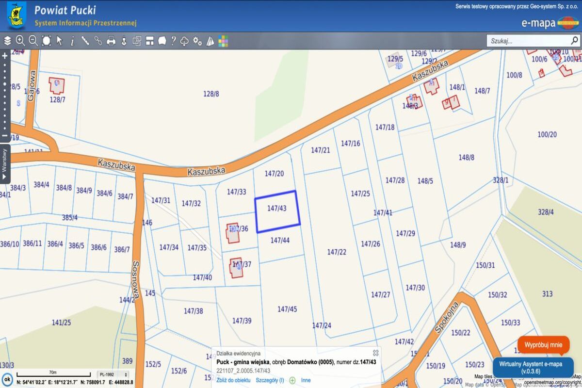 Dokładna lokalizacja po wpisaniu współrzędnych Google Maps: 54°41'05.9"N 18°12'13.8"E