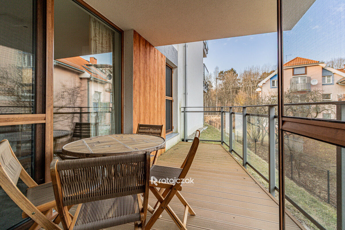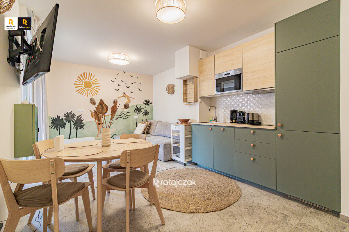 Dużym atutem nieruchomości jest prywatny taras, który stanowi idealne miejsce do odpoczynku, porannej kawy czy relaksu po dniu spędzonym na plaży.